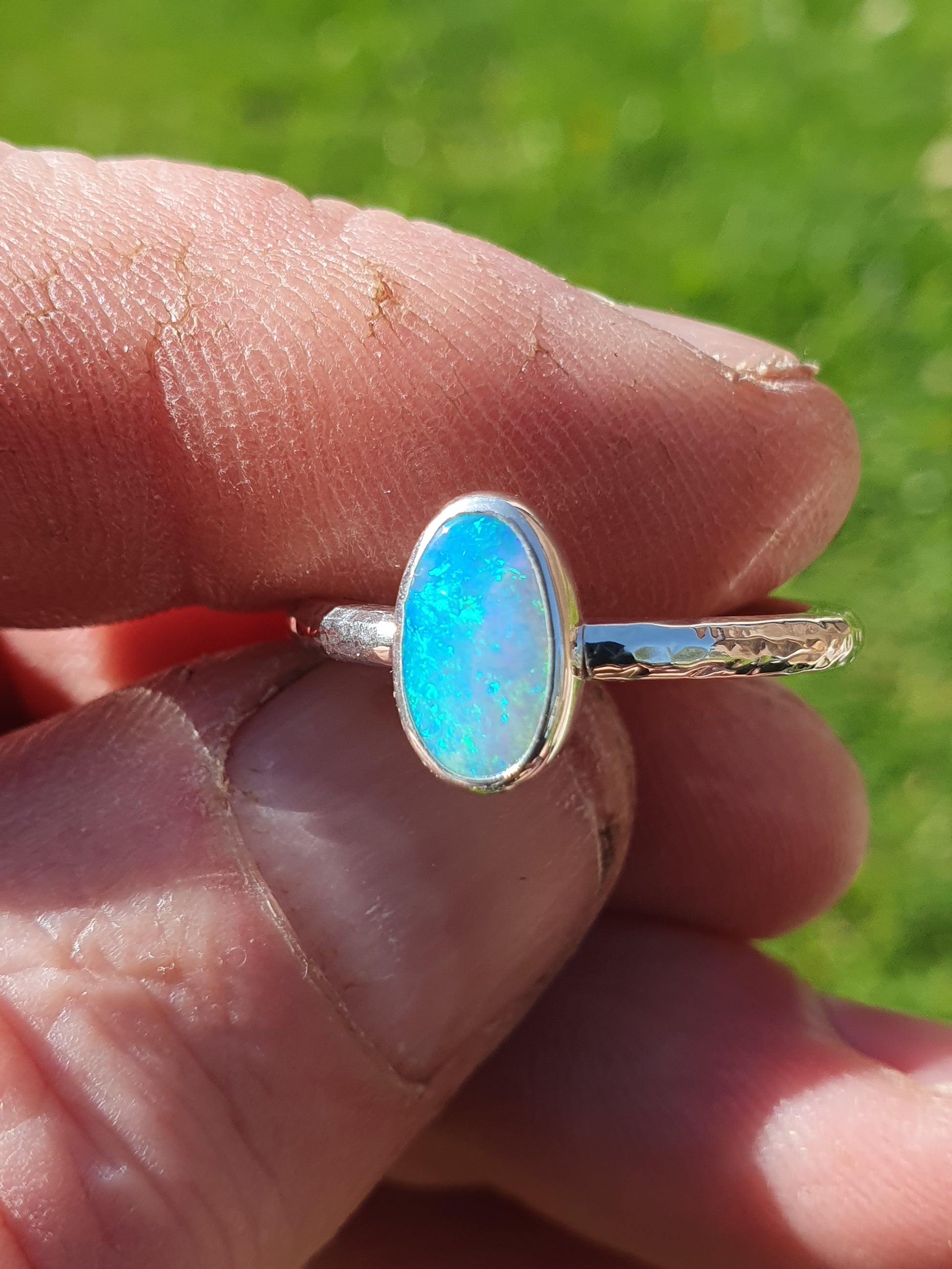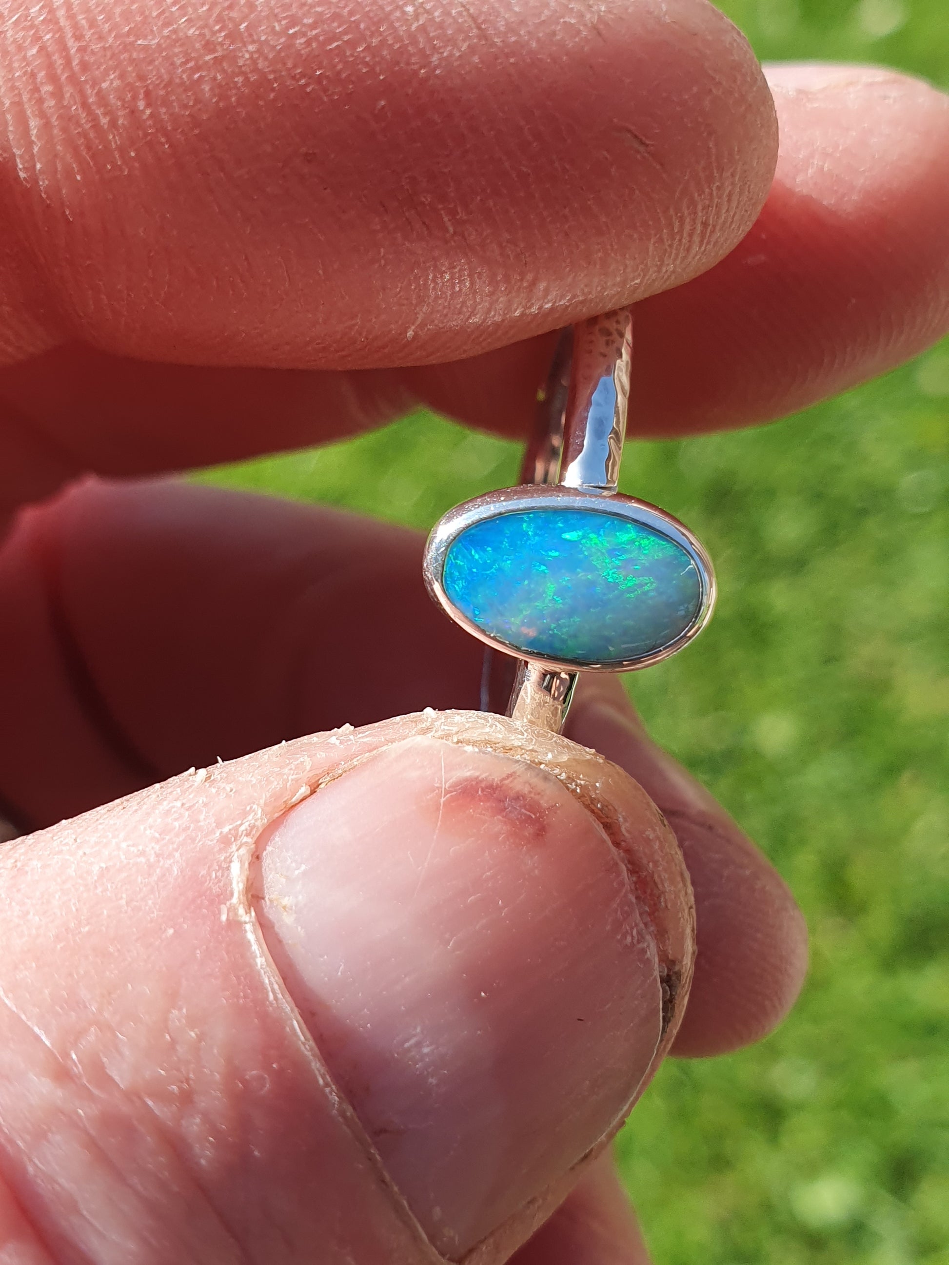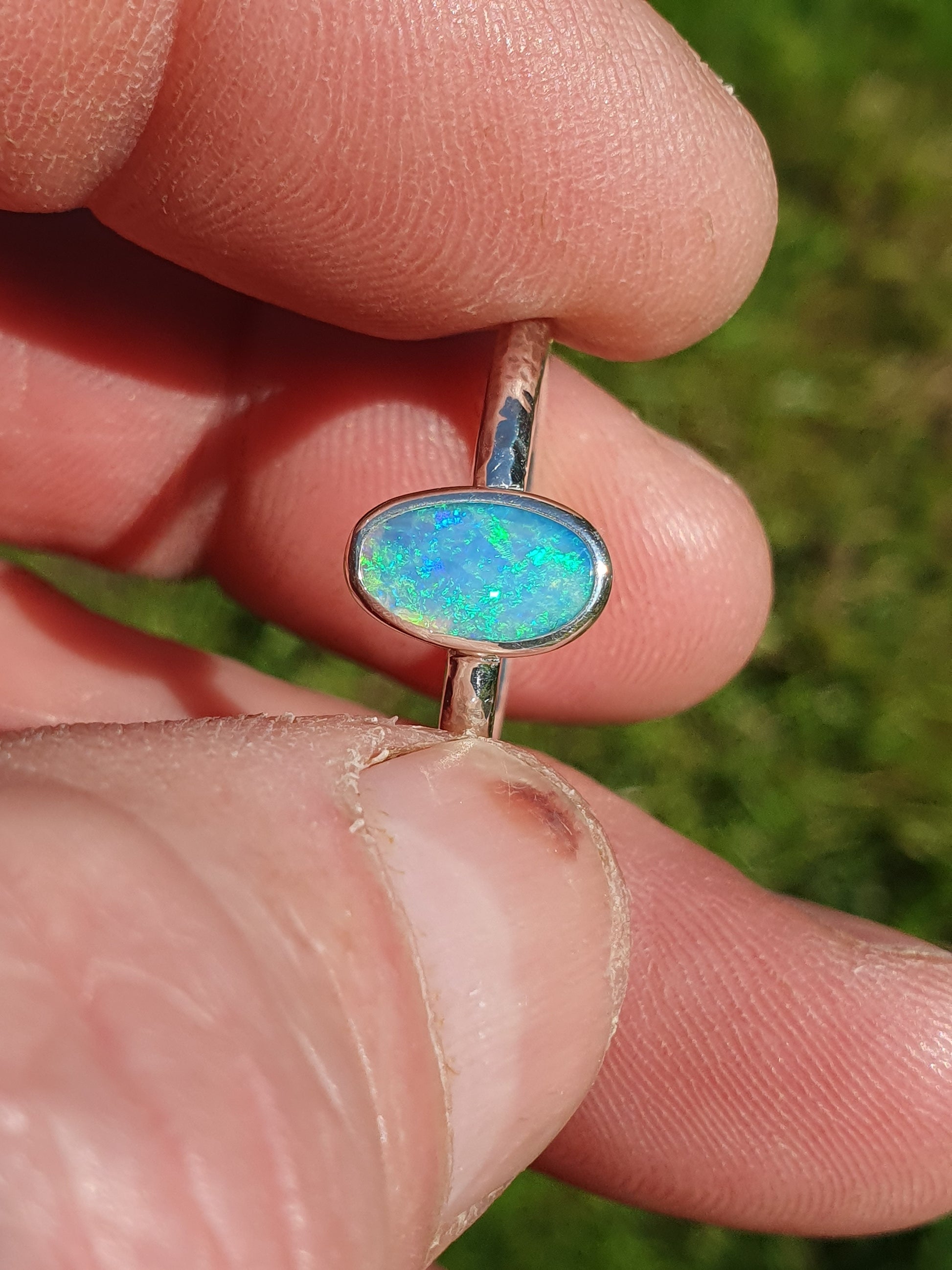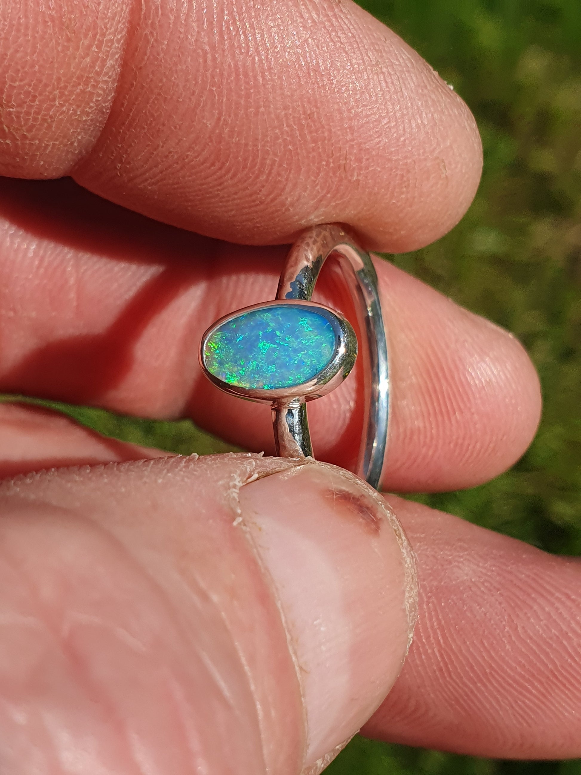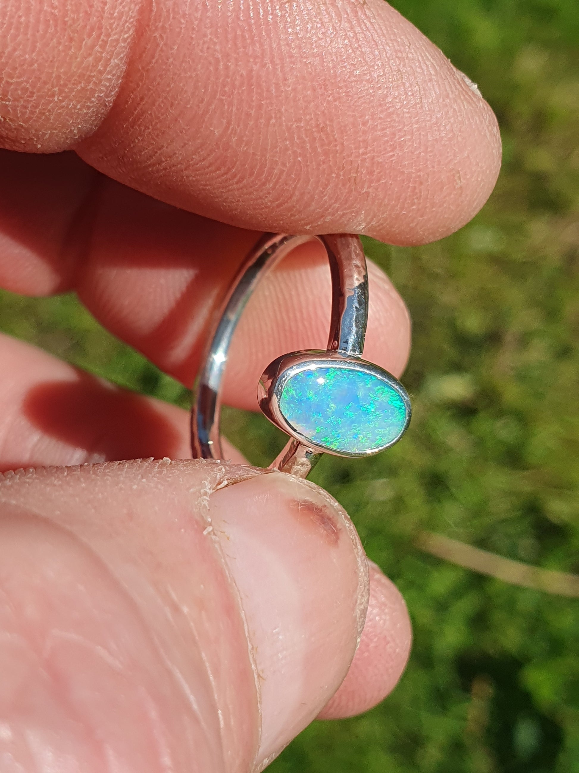 Silver solid opal ring size Q-1/2UK, 8.5US