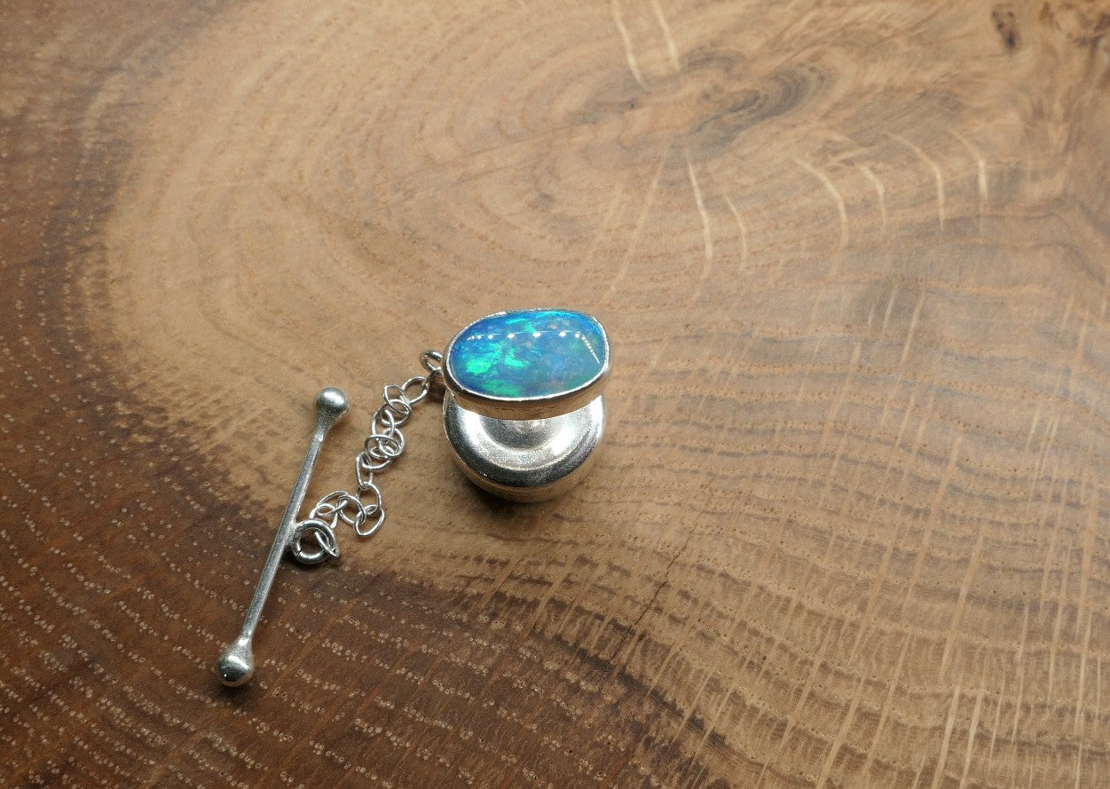 Silver tie tack with a Coober Pedy opal.