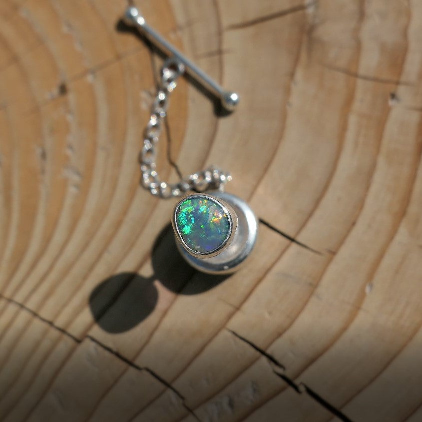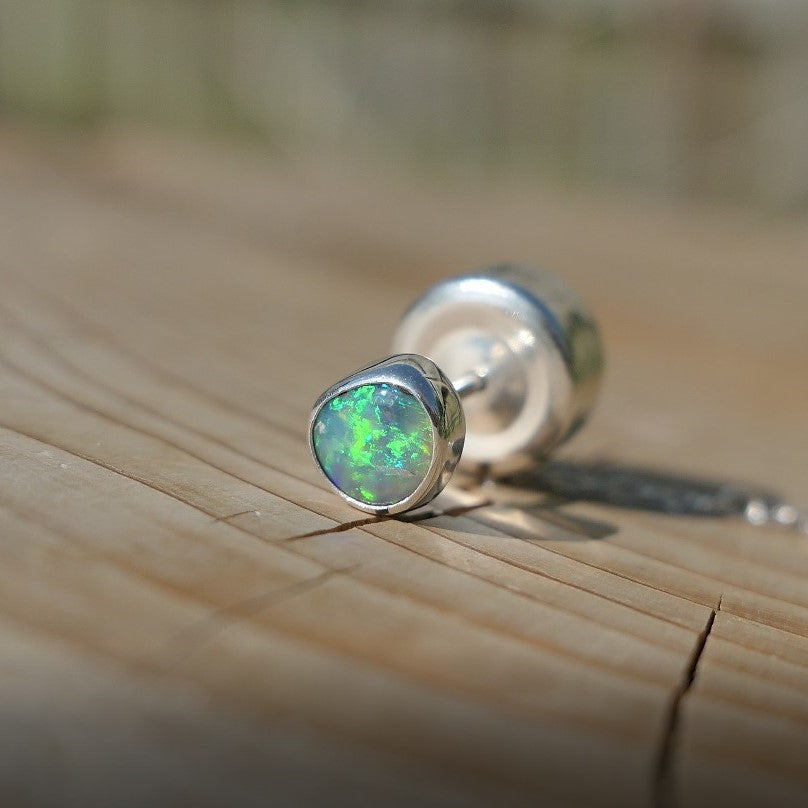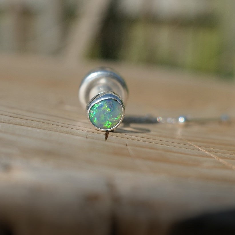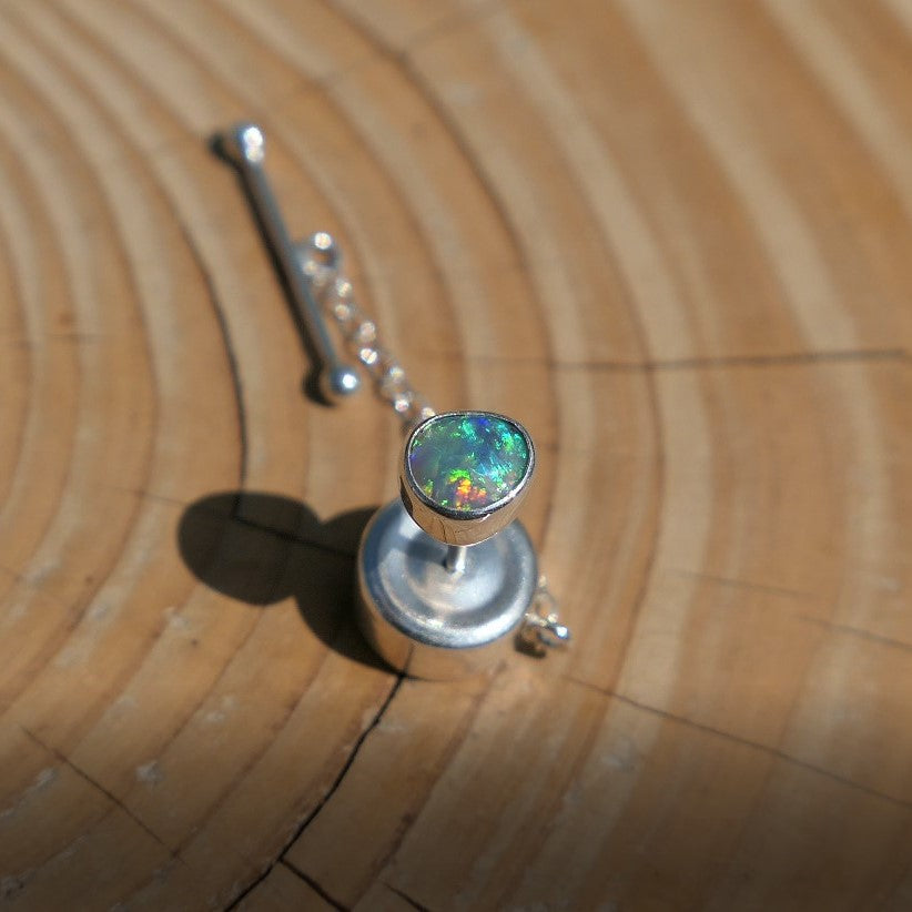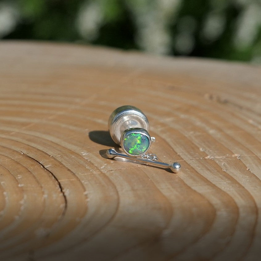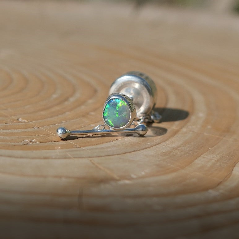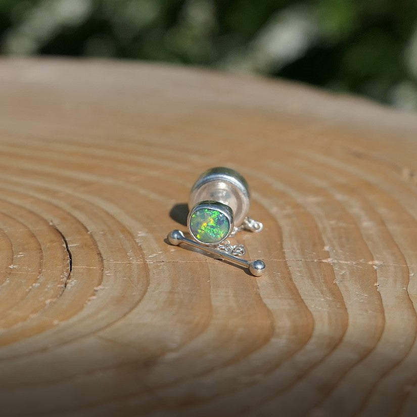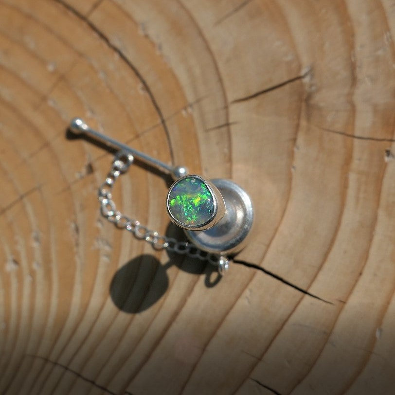 Silver tie tack with beautiful Lightning Ridge crystal opal.