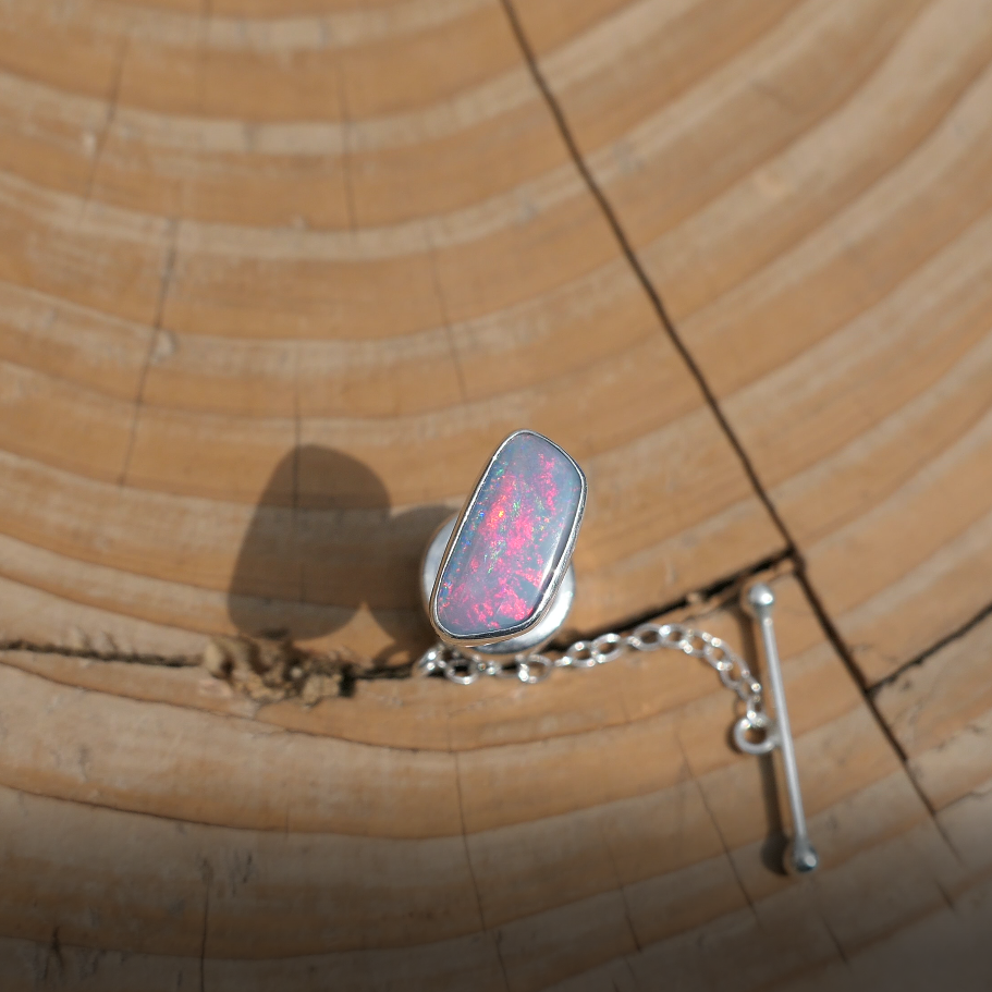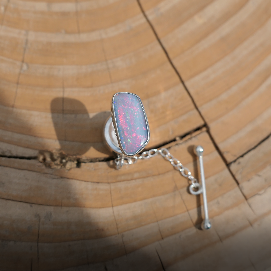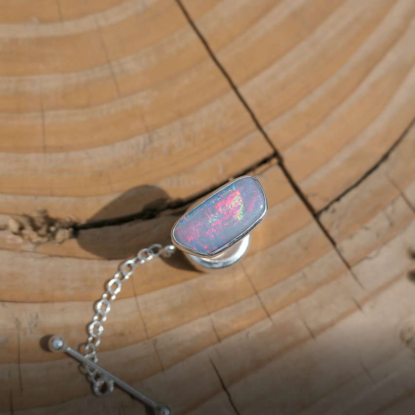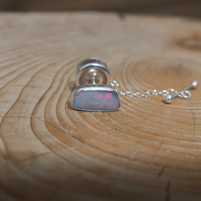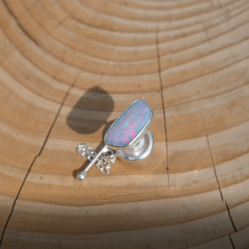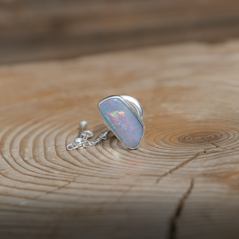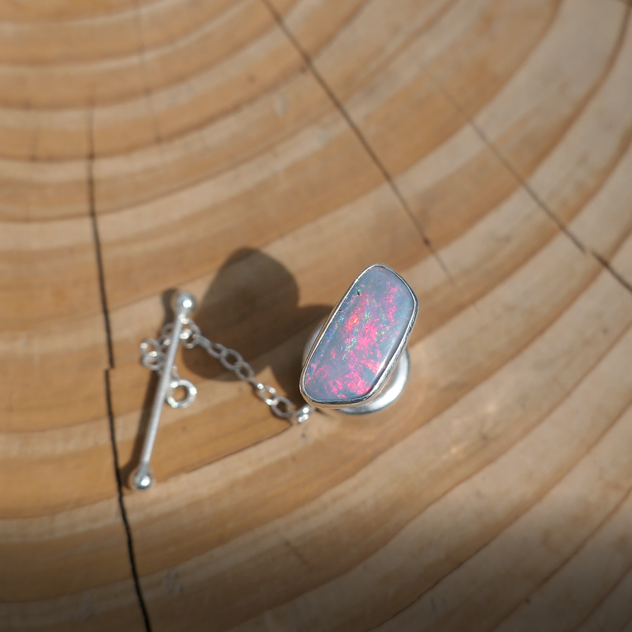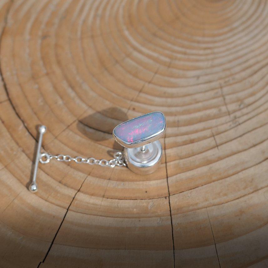 Silver tie tack with Coober Pedy doublet opal, opal is 14x6mm approx.