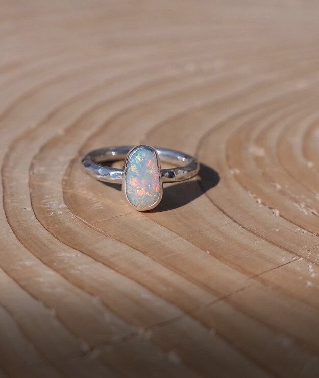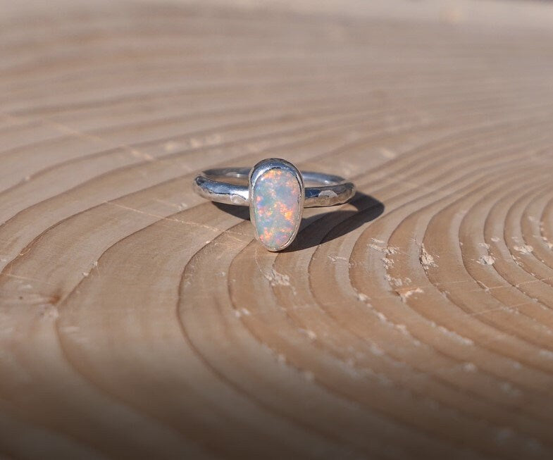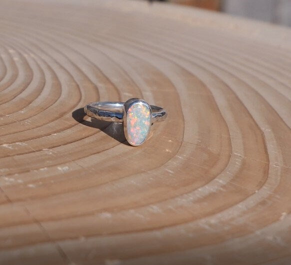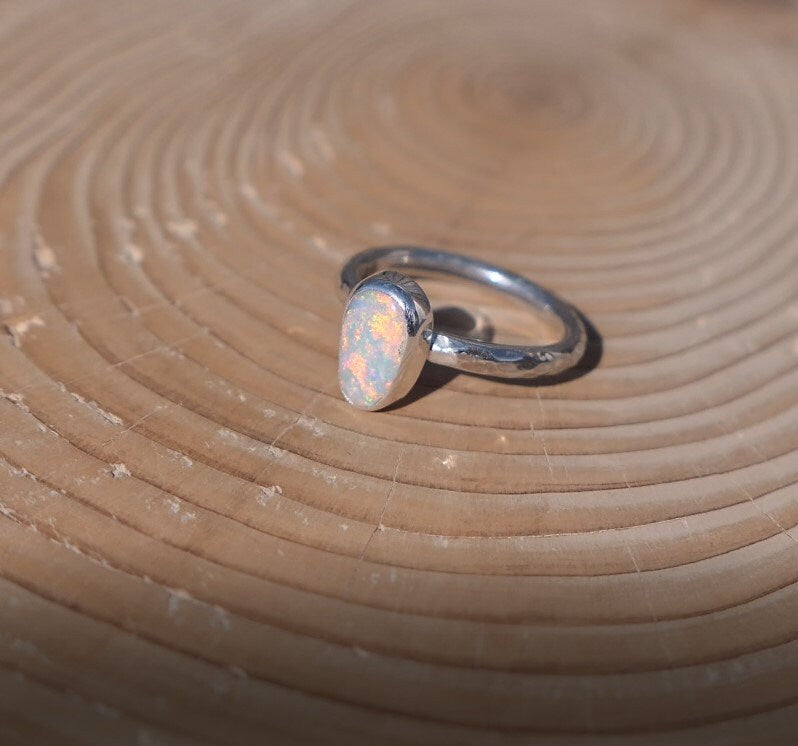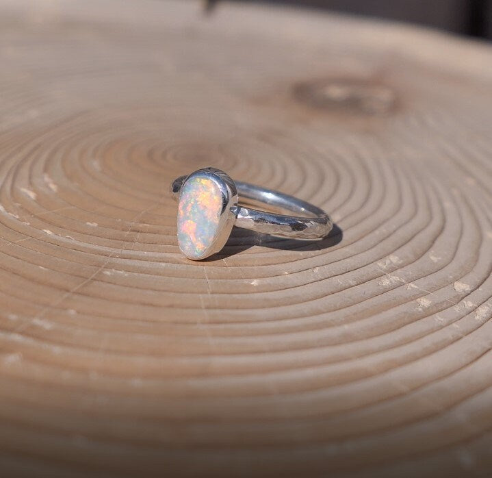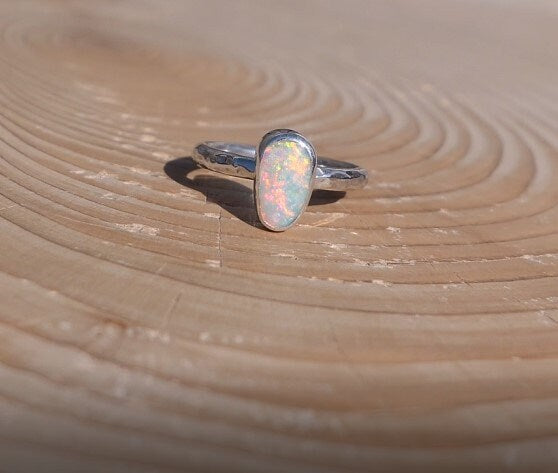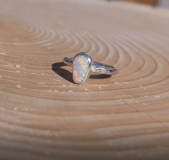 I can't re-size ring, but if you would like a specific size ring made please contact me as I have loads of opals suitable for rings.