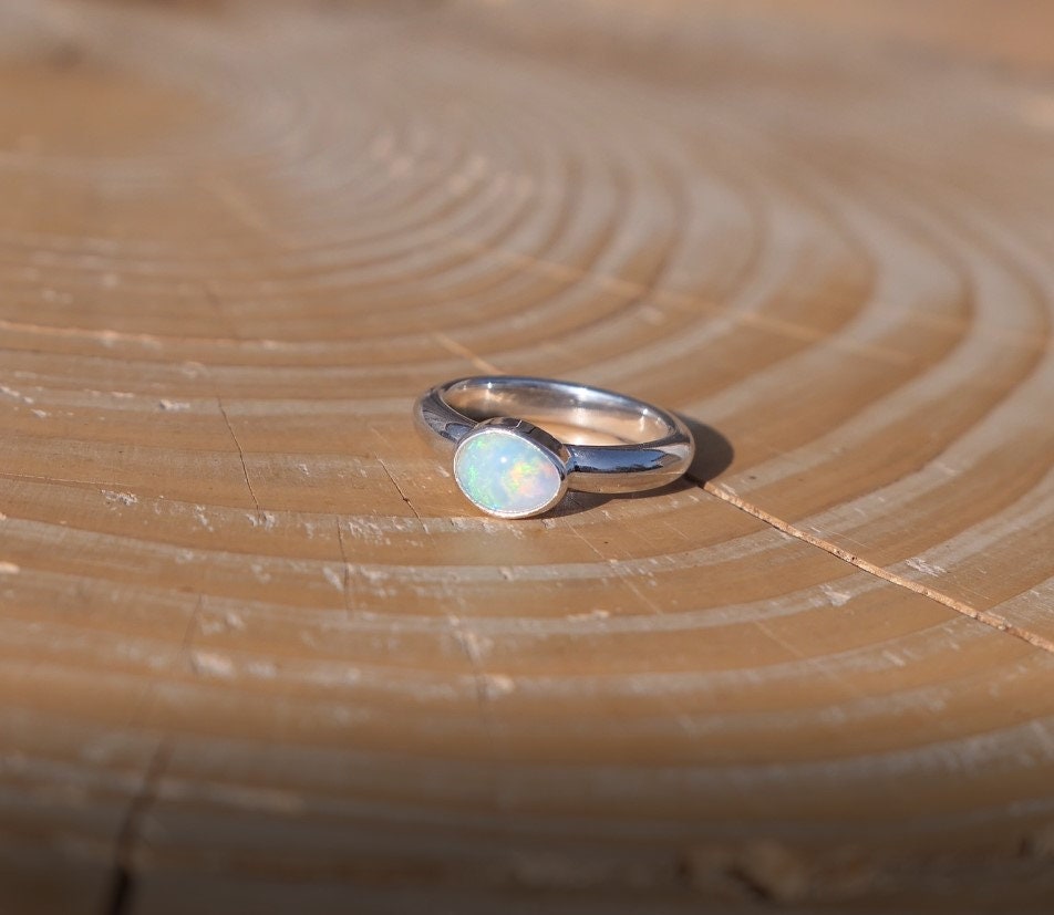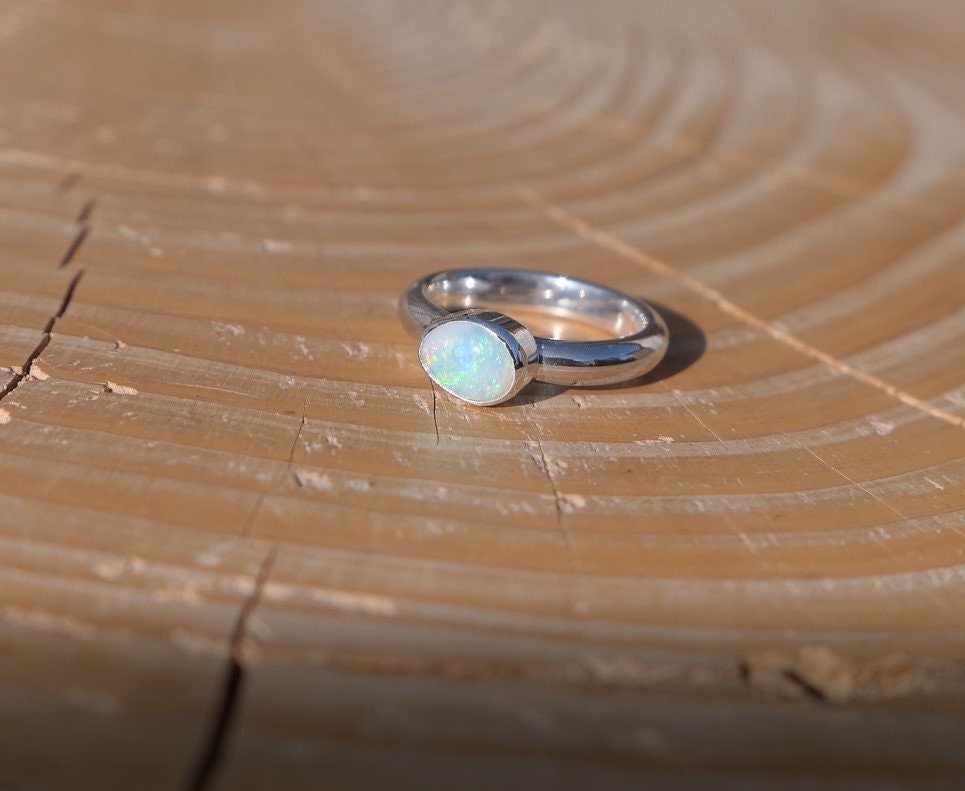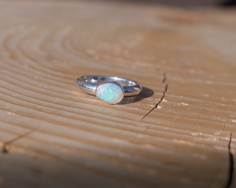 Silver ring with solid opal from Andamooka near Coober Pedy.