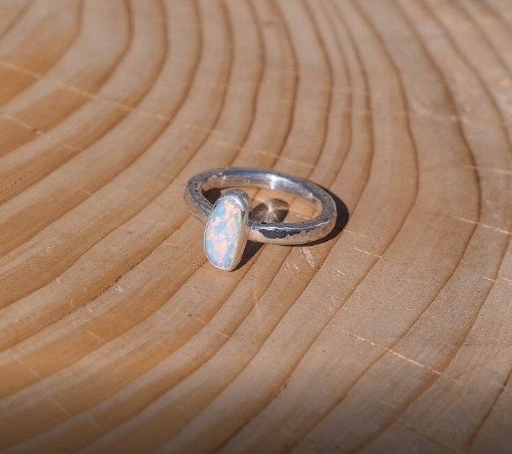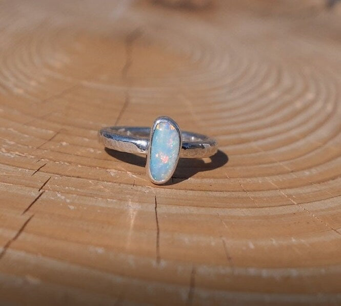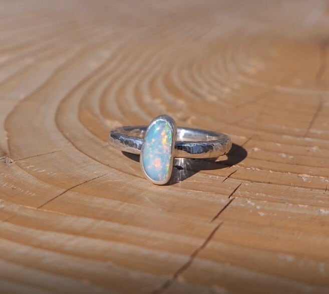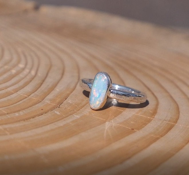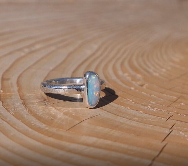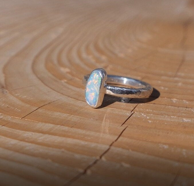 Silver ring with natural solid opal from Coober Pedy.