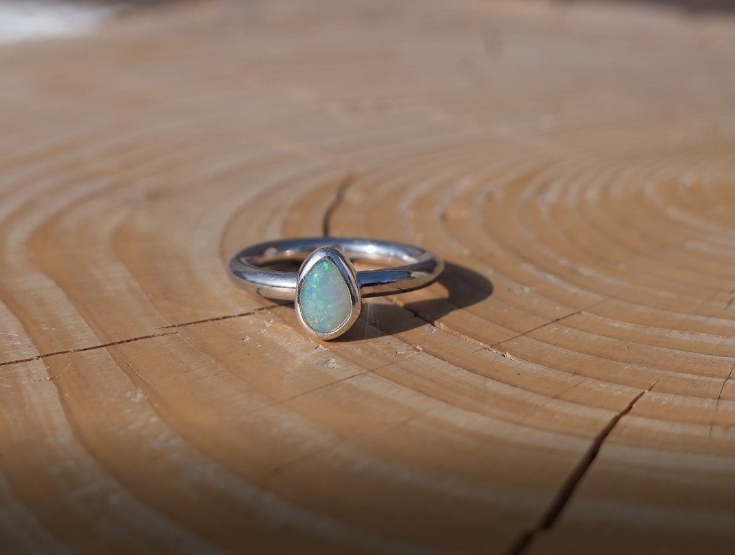Silver ring with solid opal from Andamooka near Coober Pedy.