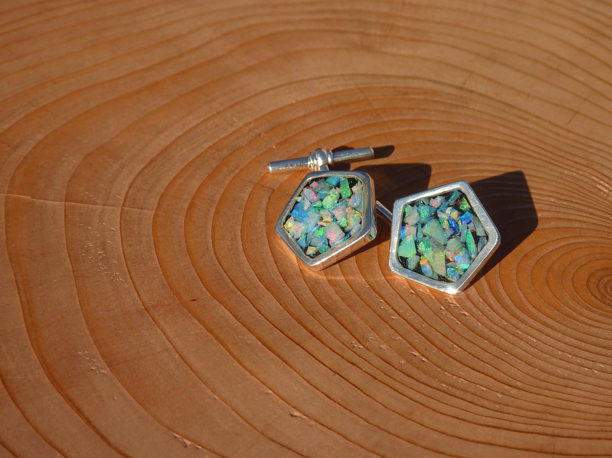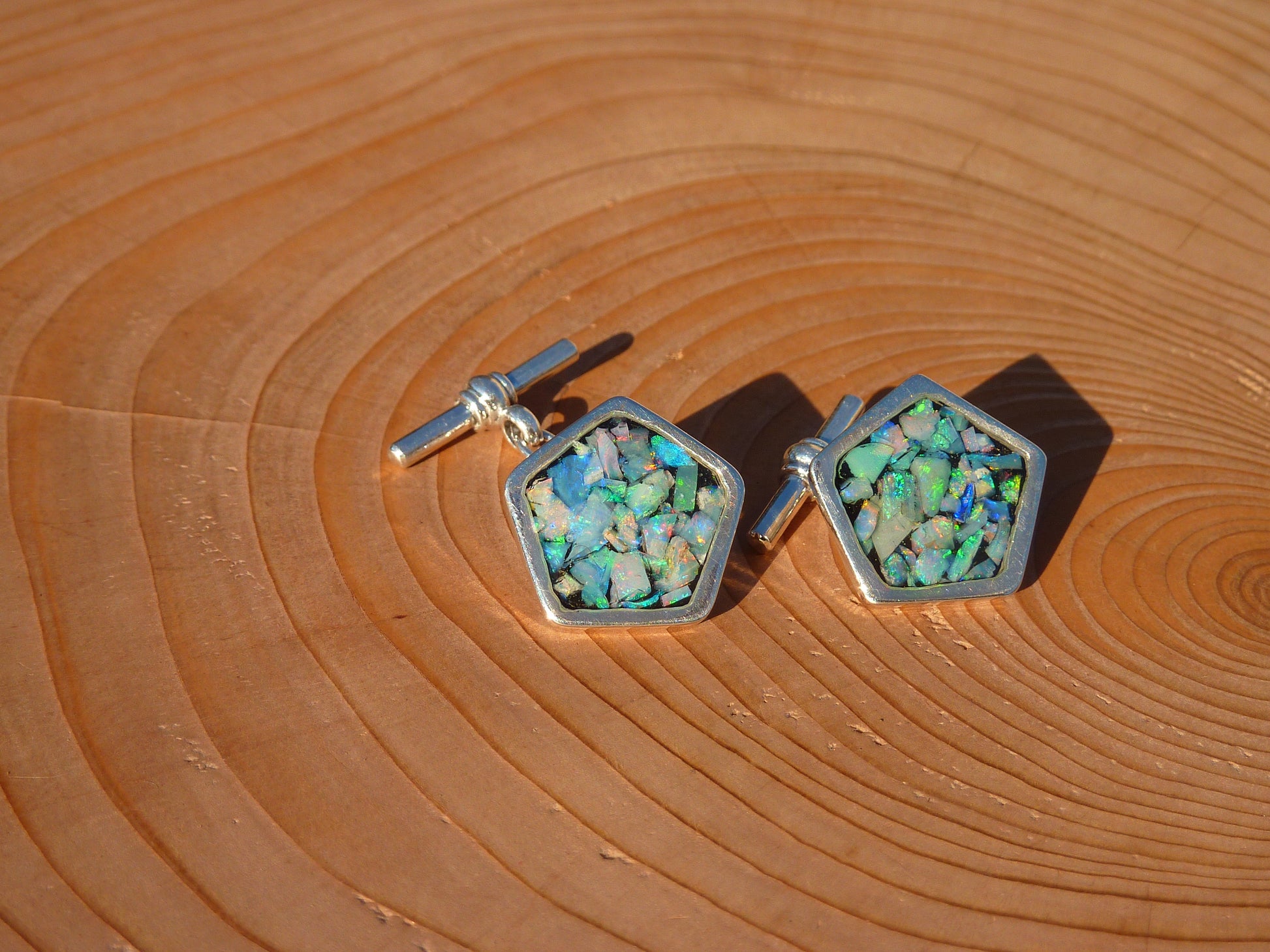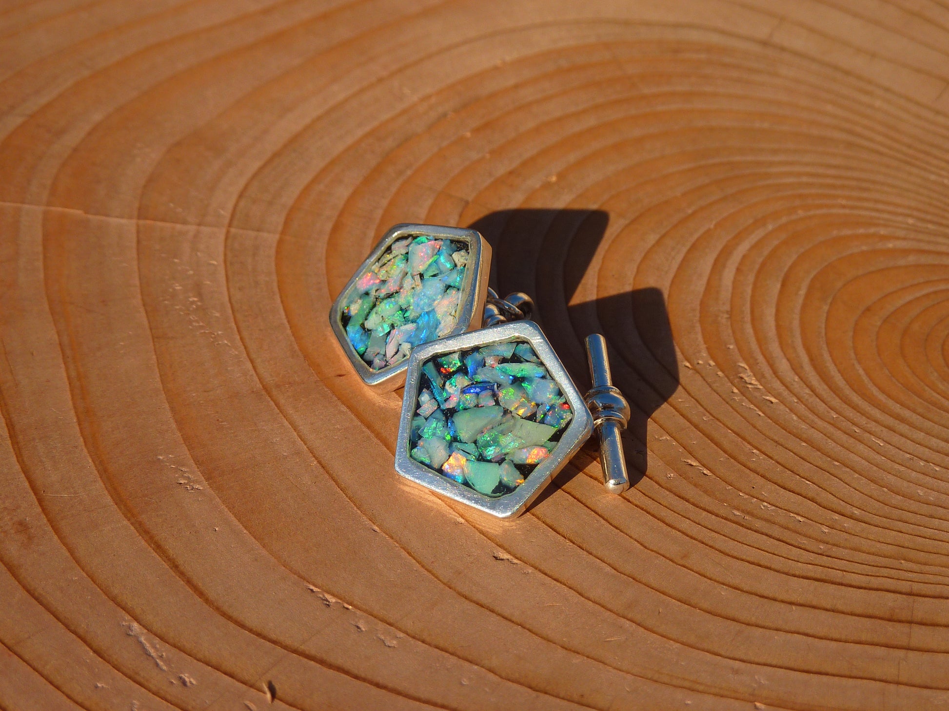 Many colours of the rainbow show in the cufflinks, with the colours constantly changing with any movement.