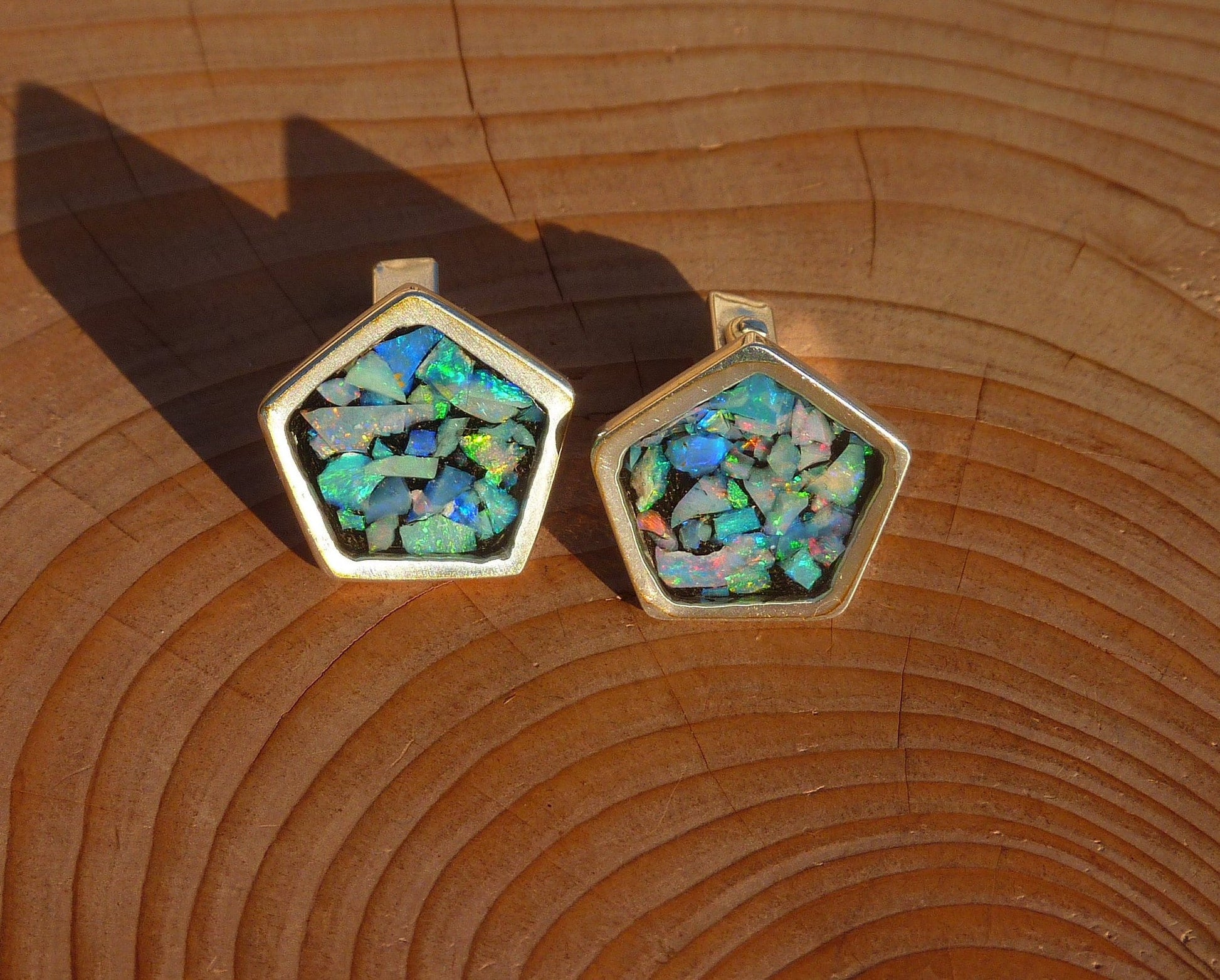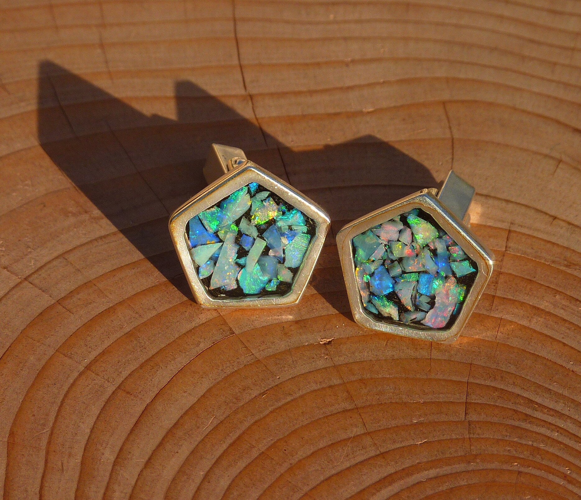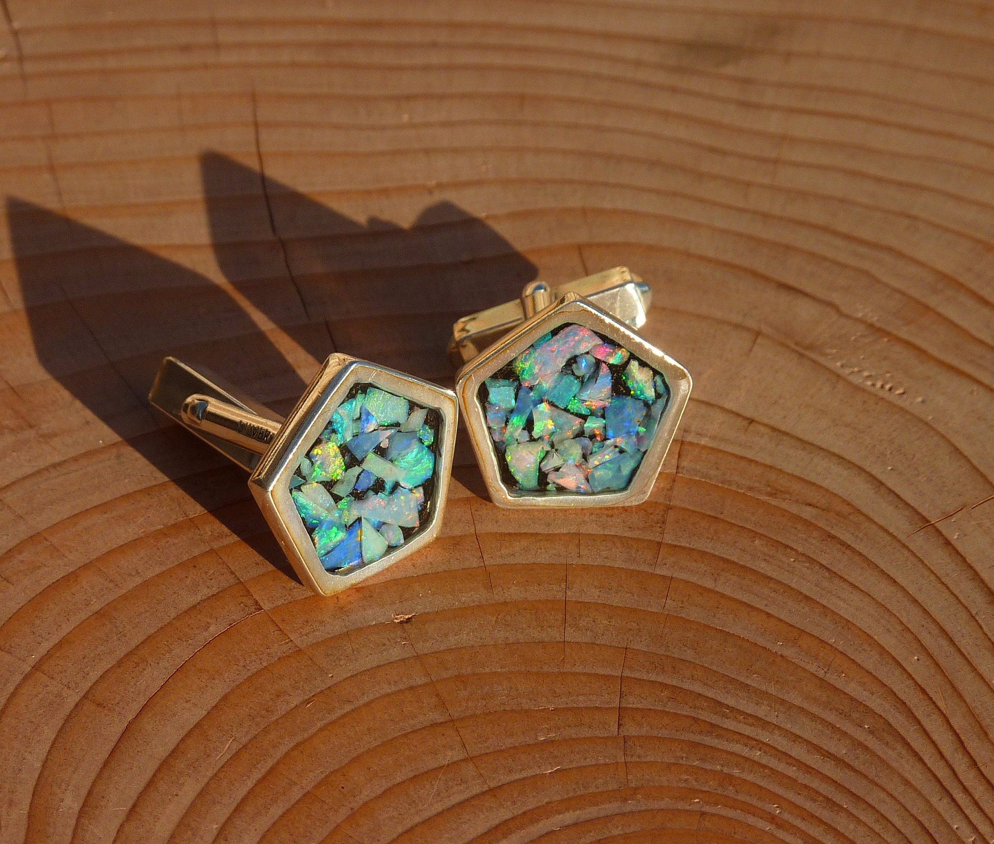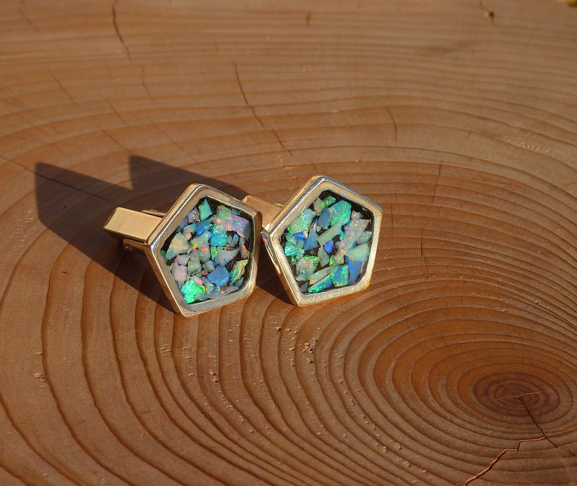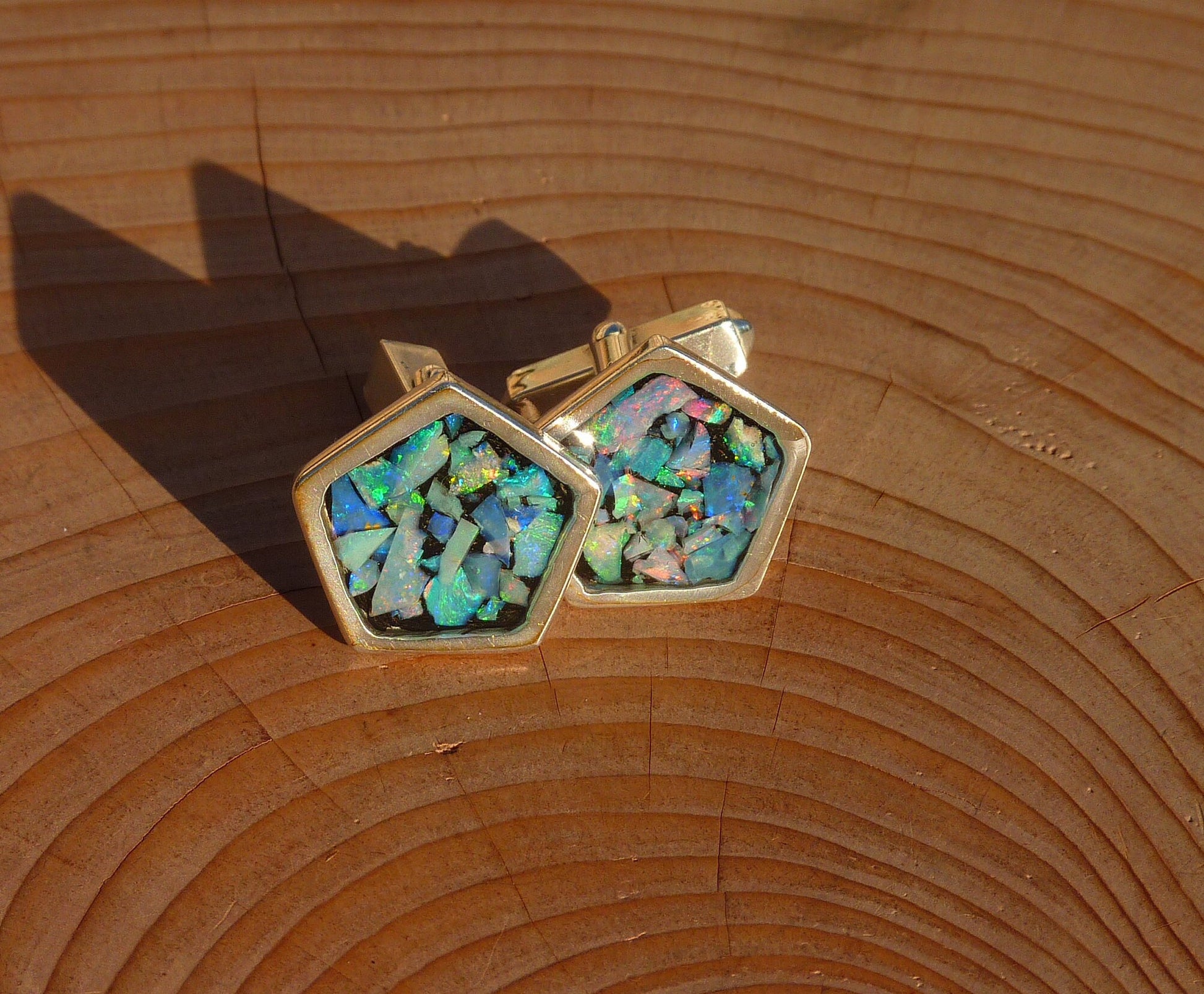 Many colours of the rainbow show in the cufflinks, with the colours constantly changing with any movement.