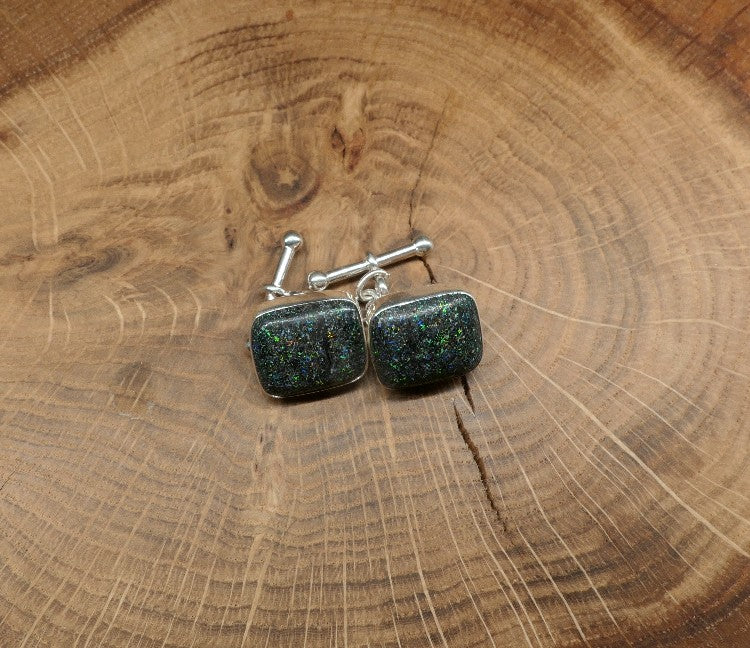Queensland sandstone matrix opals, with bright green, blue and purple pinfire.